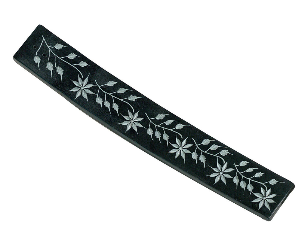 Black Flower Carved Incense Holder - Soapstone