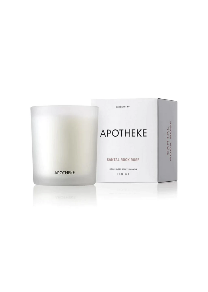 SANTAL ROCK ROSE: Our signature frosted glass candle fills your room with the richness of sandalwood is combined with earthy, herbaceous rock rose to create a lush wood scent.