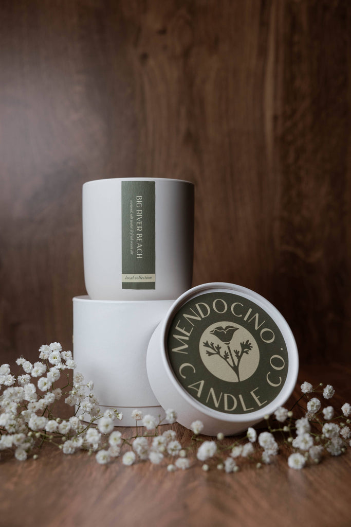 Big River Beach - our home beach, the gateway to Mendocino Village from the South and site of our daily beach walk. This beach holds so many joyful memories. This candle is packed with ocean energy - salty ocean air, verdant seaweed and crisp fresh, foggy breezes. It's grounding and earthy and marine at it's best.