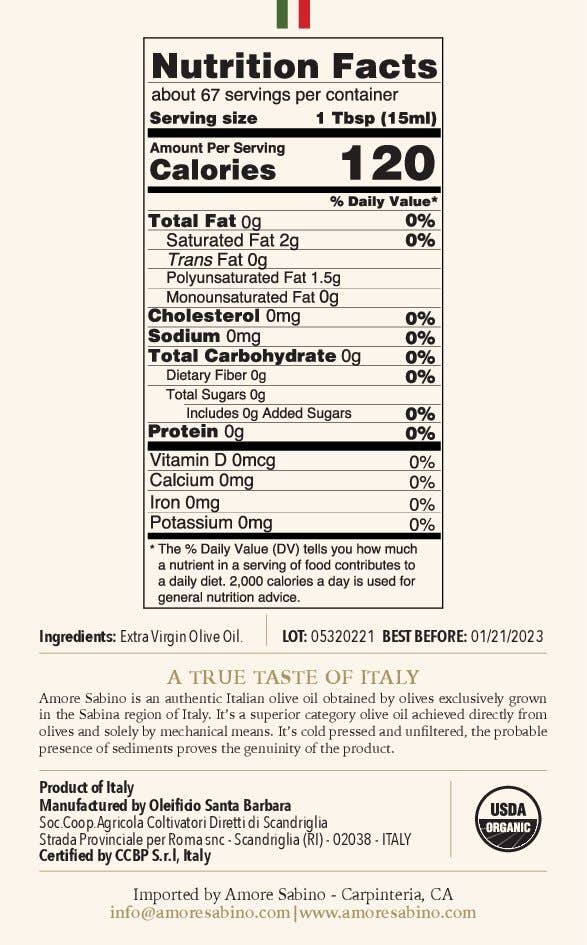 Organic Extra Virgina Olive Oil - 1L (33.8 Fl oz)