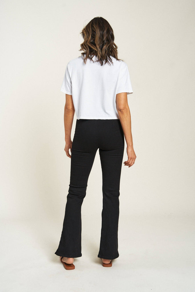 • Fitted, pull-on style made with 4% stretch & finished with a flare.