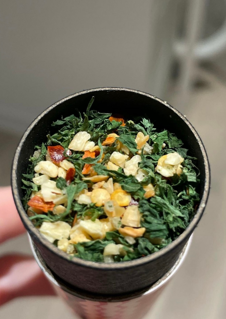 Spaghetti Dust is our ready-to-go tube of traveling Aglio, Olio e Peperoncino. The idea is that you drain your al dente! pasta and toss it in a bowl with your Spaghetti Dust and ≈ 1/3 cup of high-quality Extra Virgin Olive Oil, then serve immediately at the table or, if it's been a late night, you consume it entirely and directly on the kitchen counter.