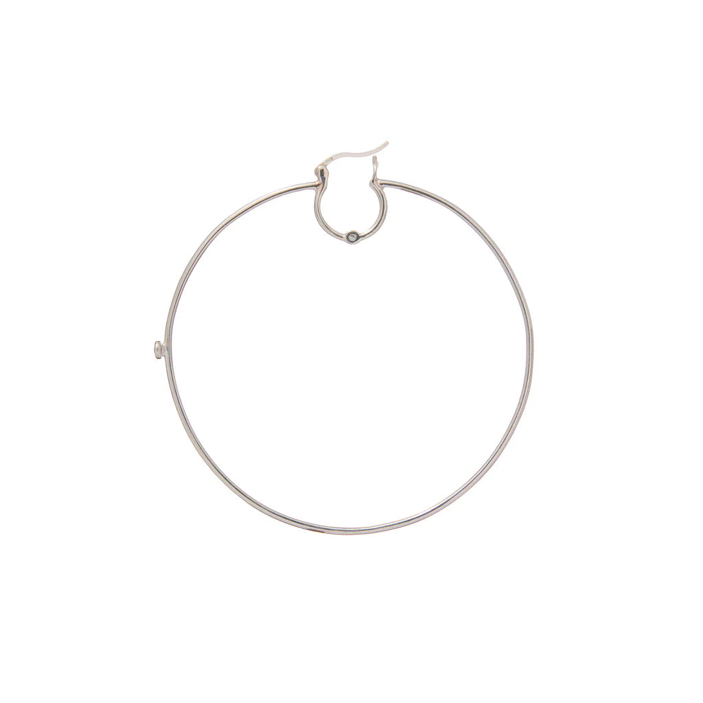 Dazzle Redefined: Meet the Reimagined Dame Diamond Hoops! Now meticulously crafted from Sterling Silver for our Silver lovers. Each hoop is adorned with a single bezel-set diamond at the front facing center and along each side of the lever-back closure.