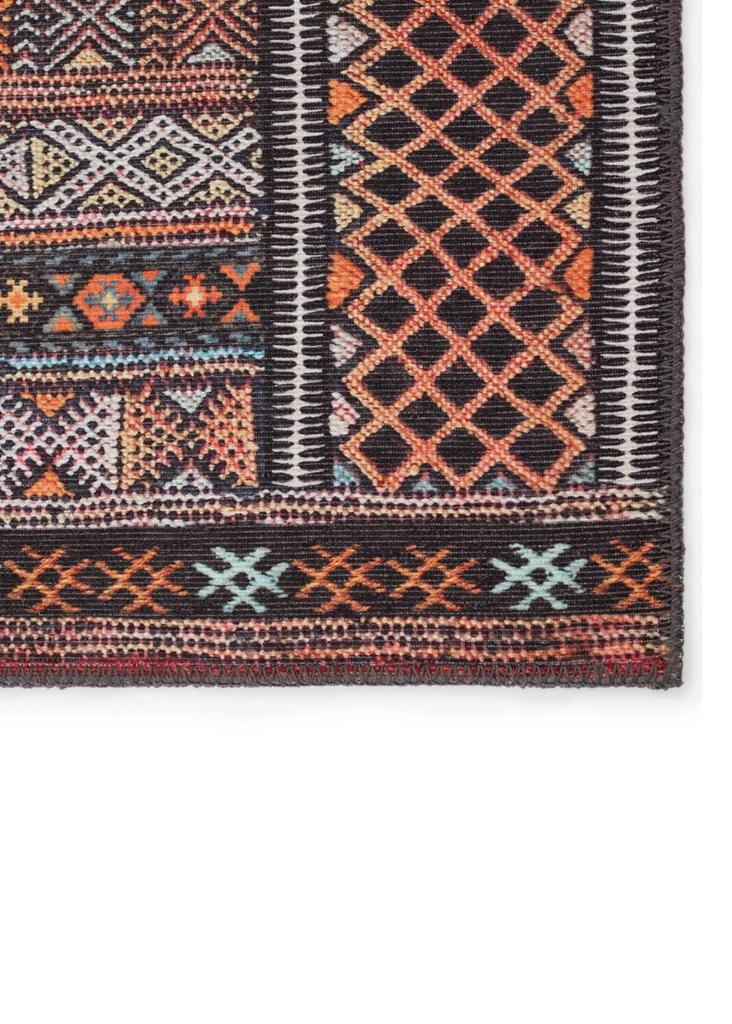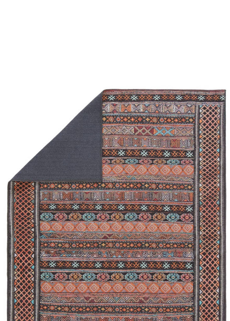 erracotta, blue, pink, orange, and charcoal. The digital print boasts a signature distressed effect, but remains a durable, well-built rug for any well trafficked place.