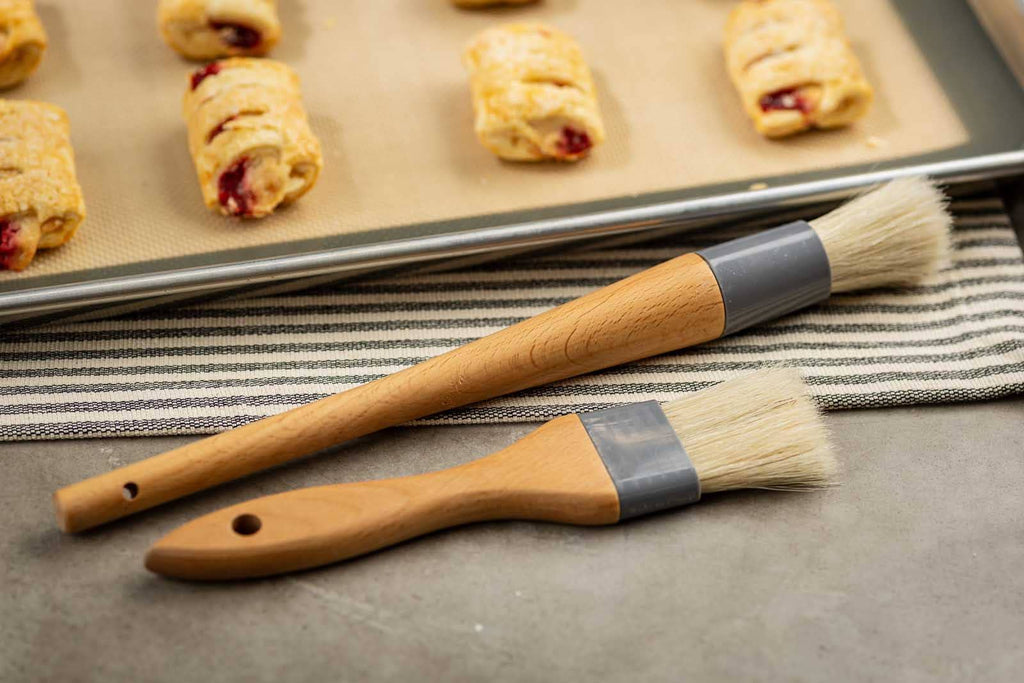 Enhance your kitchen toolkit with this traditional wooden pastry and basting brush, featuring soft bristles designed for smooth, even application of oils, glazes, and more. Ideal for brushing egg wash onto delicate pastries, greasing baking tins, and basting meats, this versatile brush ensures a gentle, precise touch. The comfortable wooden handle provides control and ease, making it a must-have for both baking and cooking enthusiasts who value craftsmanship and quality.