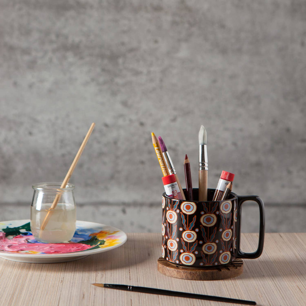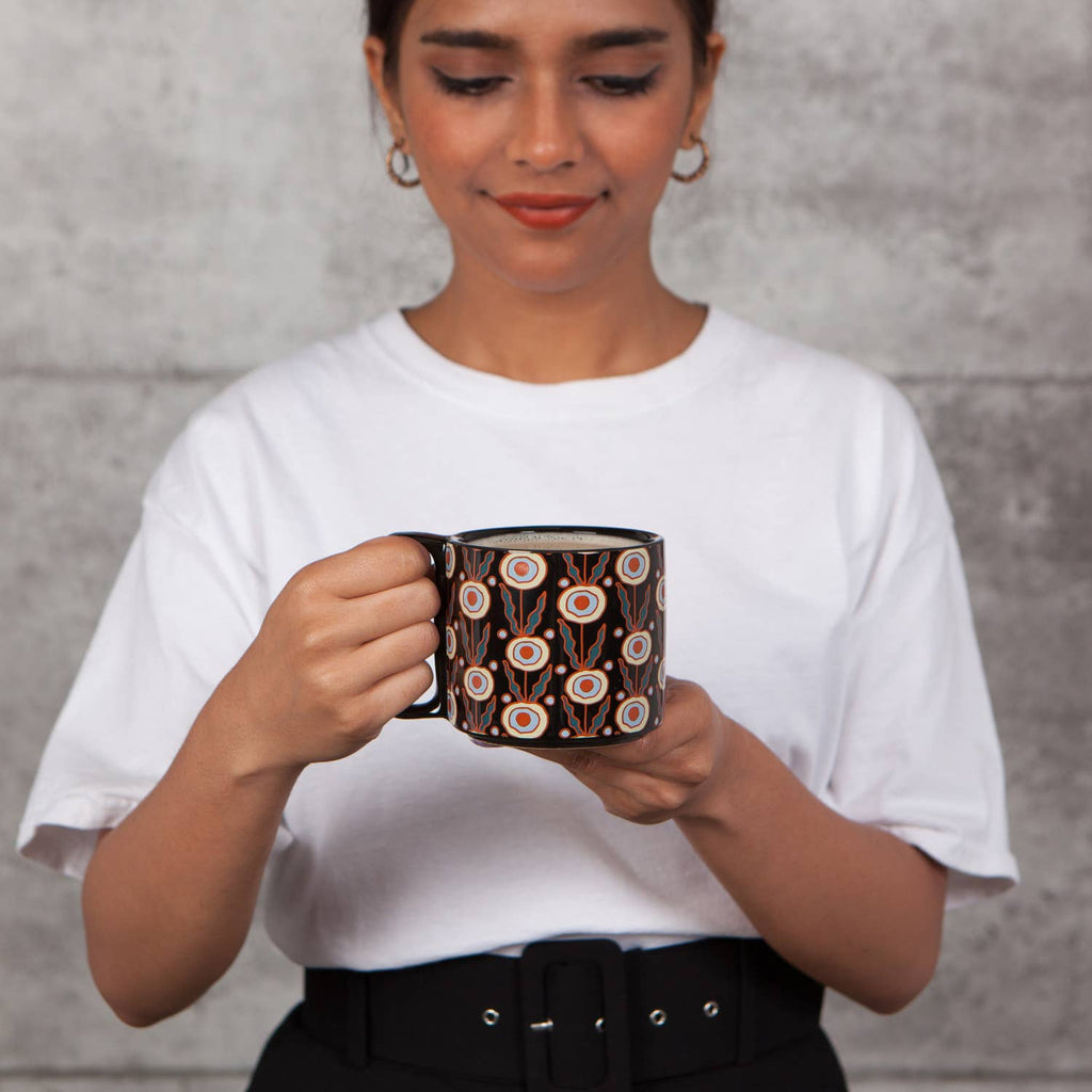 Include art in every aspect of your life, adding visual beauty to the calm satisfaction of sipping a hot beverage with the Still Life Studio Midi Mug by Danica Studio. Colors, textures and abstract shapes spark the imagination, infusing the start of your day with interest and depth. The bold, buoyant designs on these ceramic beauties will lift your spirits before you've had that first dose of caffeine. At 11 ounces, Midi Mugs are just the right size for your morning cuppa — or two — of coffee or tea. Rectangular handles are a thoughtful design feature that makes the mugs oh-so-comfortable to hold and sip.