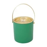 6" Round x 7-1/4"H 1-1/2 Quart Enameled Stainless Steel Ice Bucket w/ Lid & Glass Knob, Gold Finish & Turquoise Color