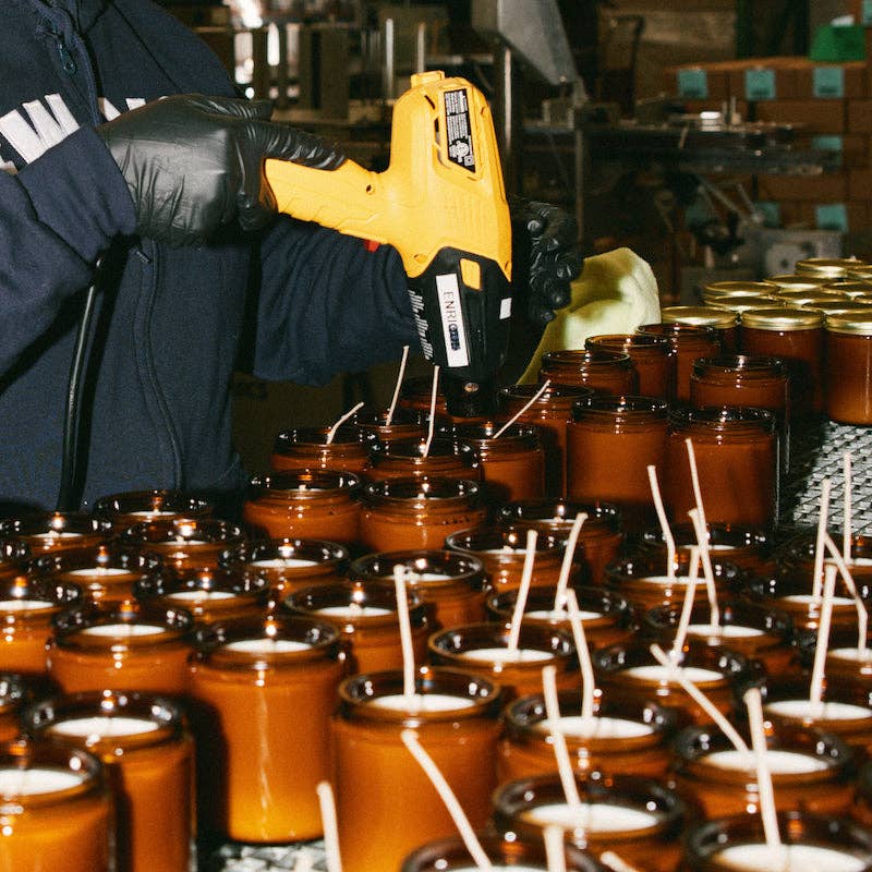 Our 7.2 oz Standard Candles are hand-poured into apothecary inspired amber jars with our signature kraft label and a brass lid.
